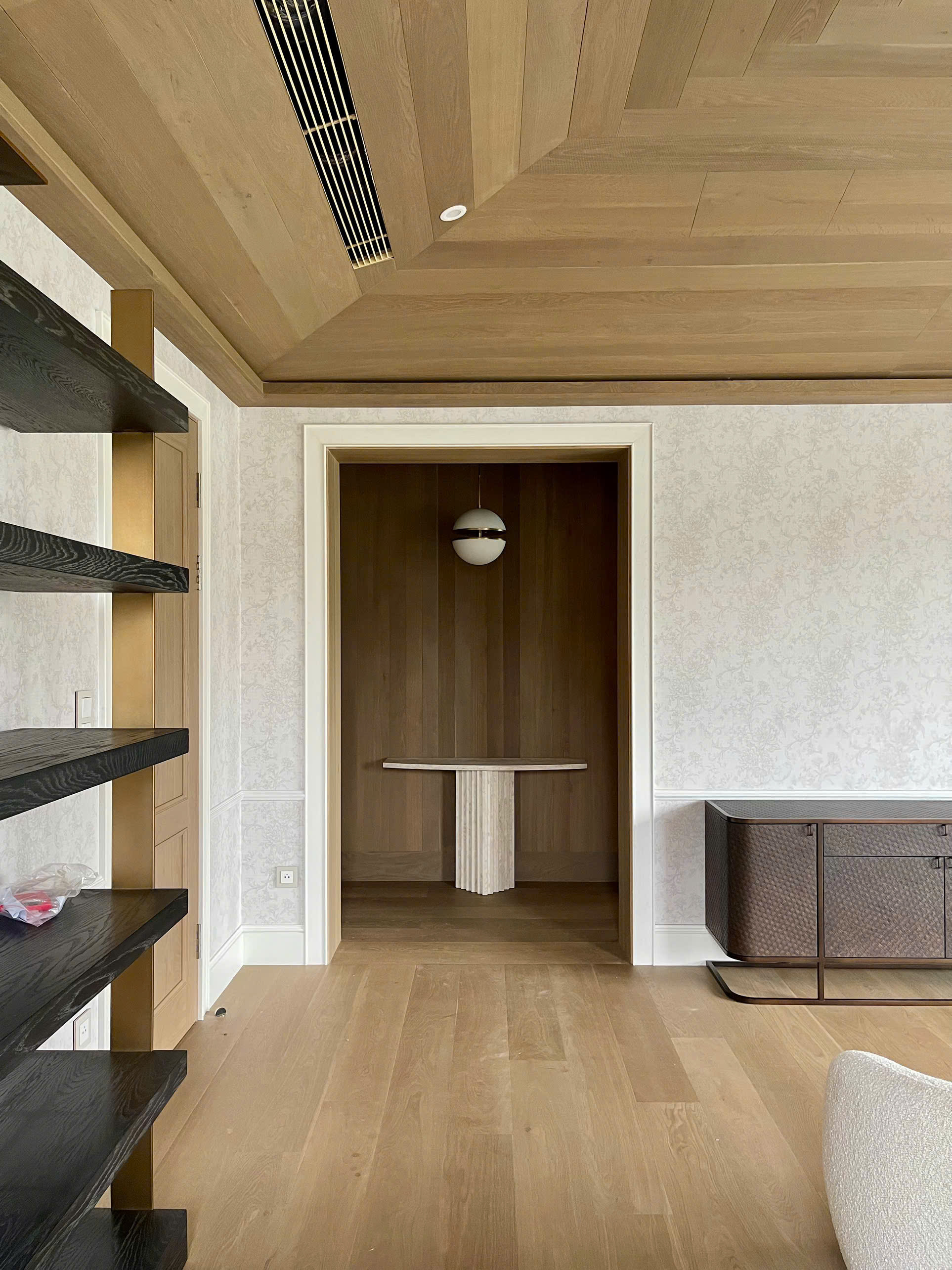 Với những không gian cần sự yên tĩnh như phòng ngủ, phòng họp hay căn hộ có thiết kế mở, gỗ kỹ thuật còn giúp hạn chế tiếng vọng, giữ hơi ấm, tạo nên một không gian vừa riêng tư vừa ấm cúng.